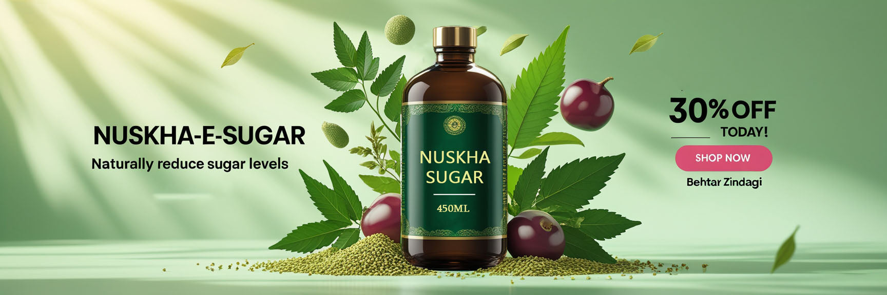 NUSKHA SUGAR HERBAL SYRUP قدرتی جڑی بوٹیوں سے تیار کردہ ایک مؤثر فارمولا ہے جو شوگر لیول کو کنٹرول کرنے اور صحت مند زندگی کی طرف قدم بڑھانے میں مدد فراہم کرتا ہے۔ باقاعدہ استعمال سے آپ اپنی توانائی اور روزمرہ صحت میں بہتری محسوس کر سکتے ہیں۔